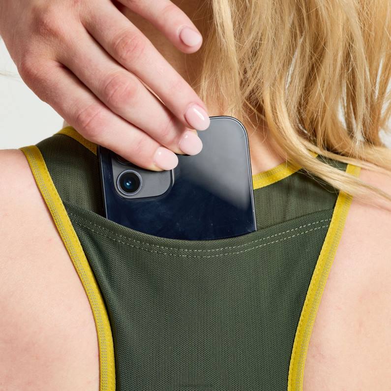- αναπνεύσιμο πλέγμα στο πίσω μέρος με ενσωματωμένη τσέπη για συγκράτηση μέσων