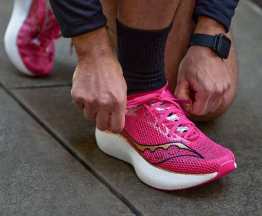 είναι ταχύτατη σε όλα όταν δένετε την ενδορφίνη pro 3. σχεδιασμένη με μια πλάκα από ανθρακονήματα και μια ακόμη πιο παχιά στοίβα από αφρό pwrrunpb απορρόφησης κραδασμών, απολαμβάνετε πιο ποπ κάτω από τα πόδια για την απόλυτη εμπειρία go-fast.